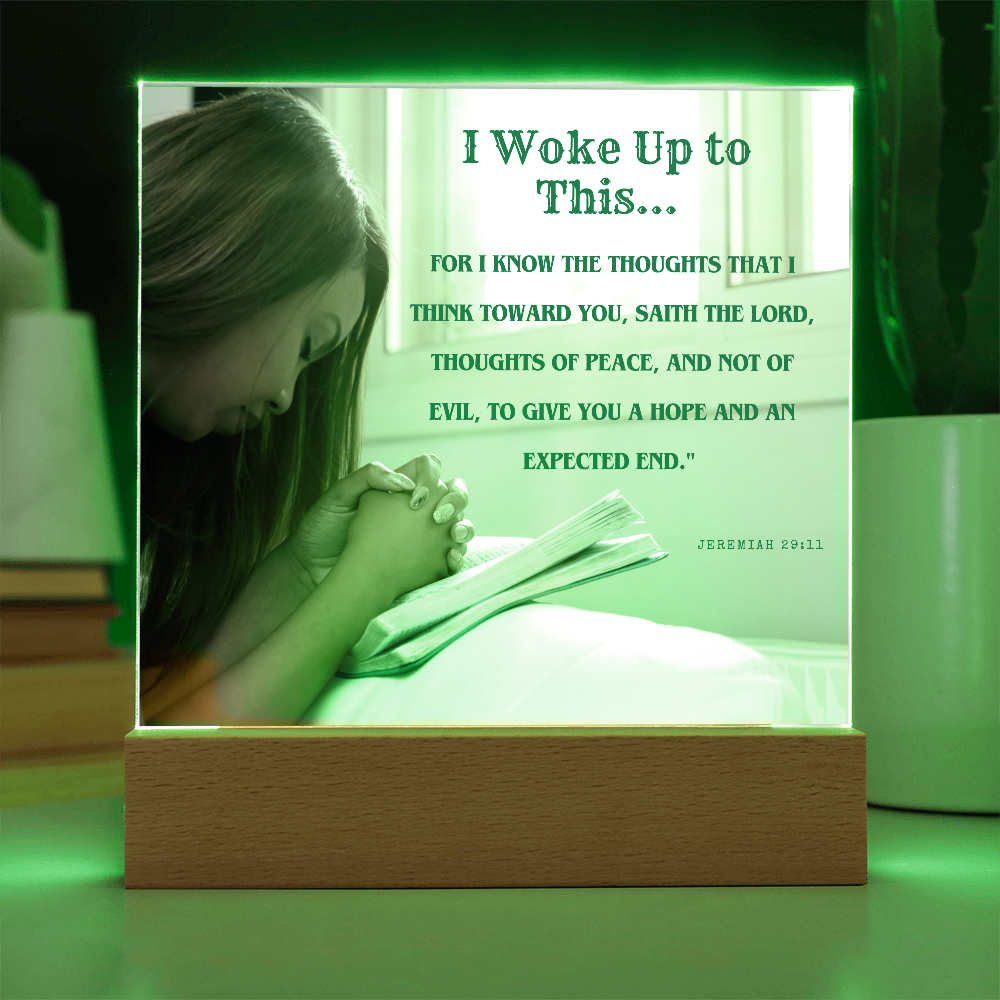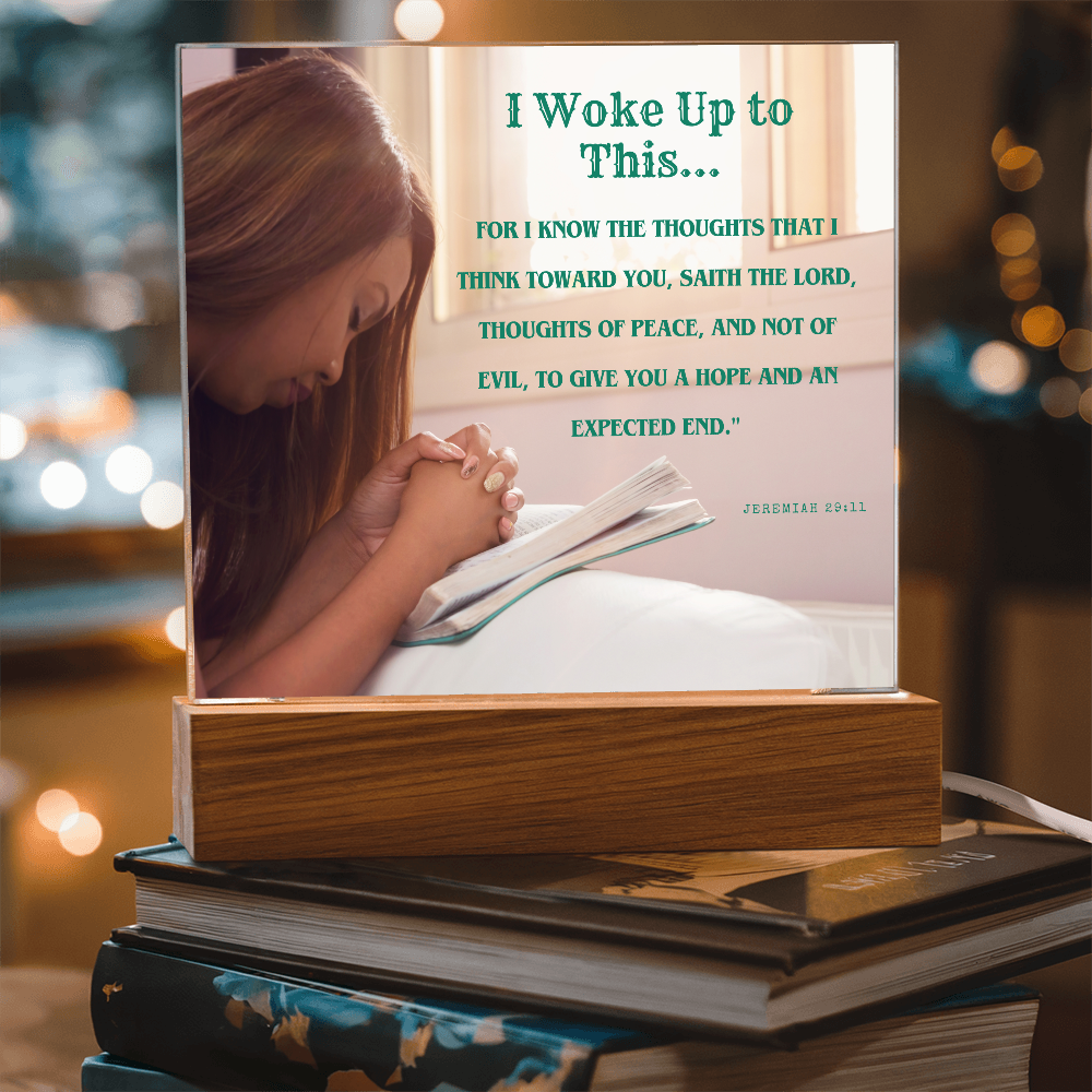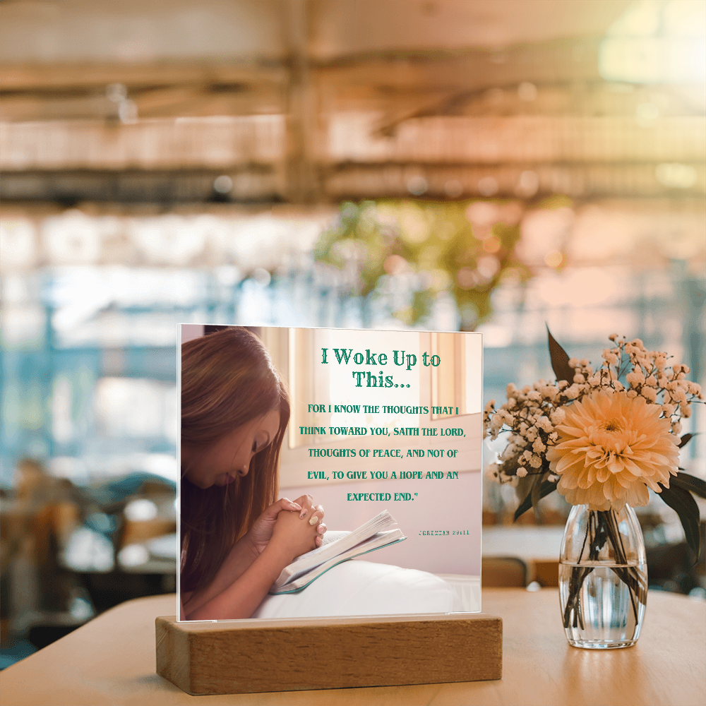 Your plaque will be crafted from premium acrylic with a professionally printed design for a polished look. It comes with a stylish wooden LED base, and you can choose between a USB plug-in option OR a cordless battery-operated option (requires 2 AAA batteries, not included). Both LED bases feature 7 vibrant colors, allowing the user to customize the lighting with various color changes and dynamic cycles.
