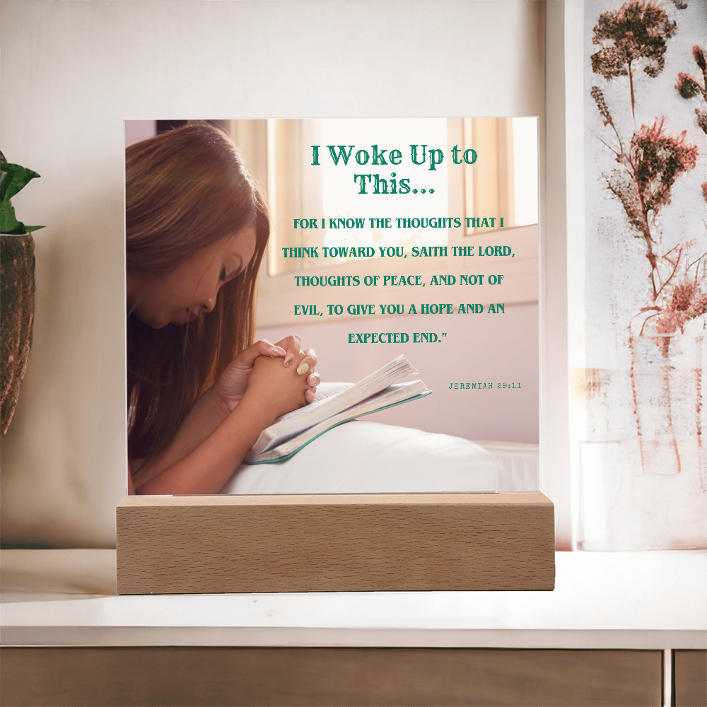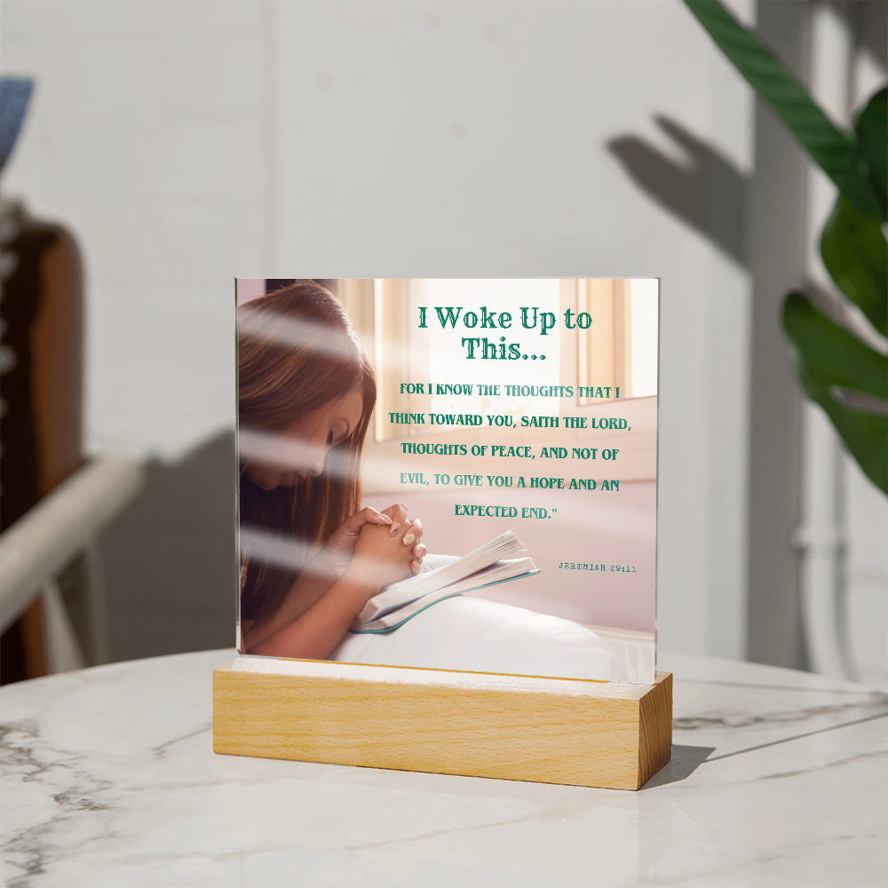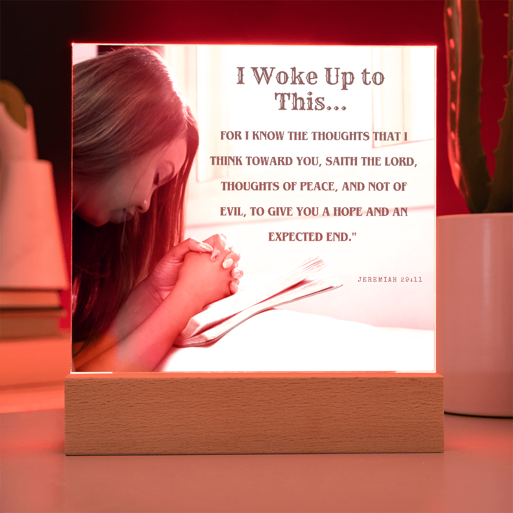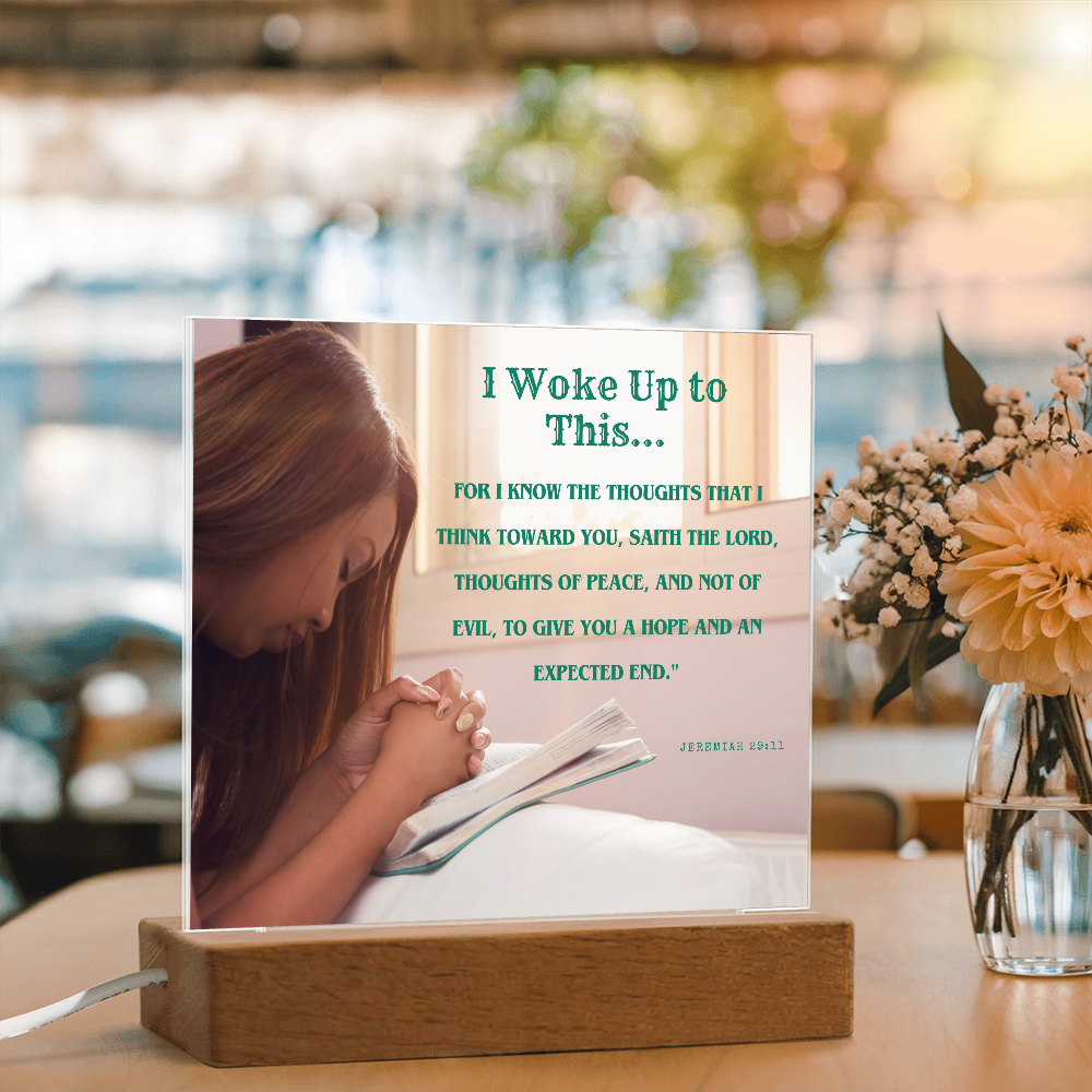 Your plaque will be crafted from premium acrylic with a professionally printed design for a polished look. It comes with a stylish wooden LED base, and you can choose between a USB plug-in option OR a cordless battery-operated option (requires 2 AAA batteries, not included). Both LED bases feature 7 vibrant colors, allowing the user to customize the lighting with various color changes and dynamic cycles.
