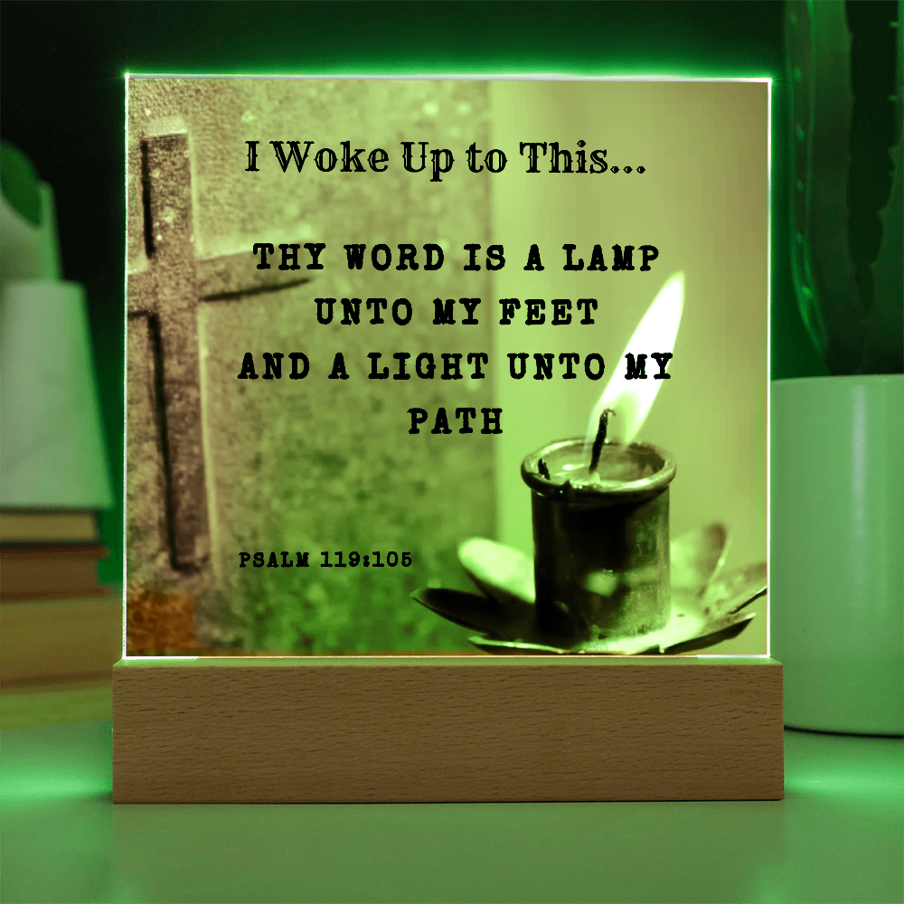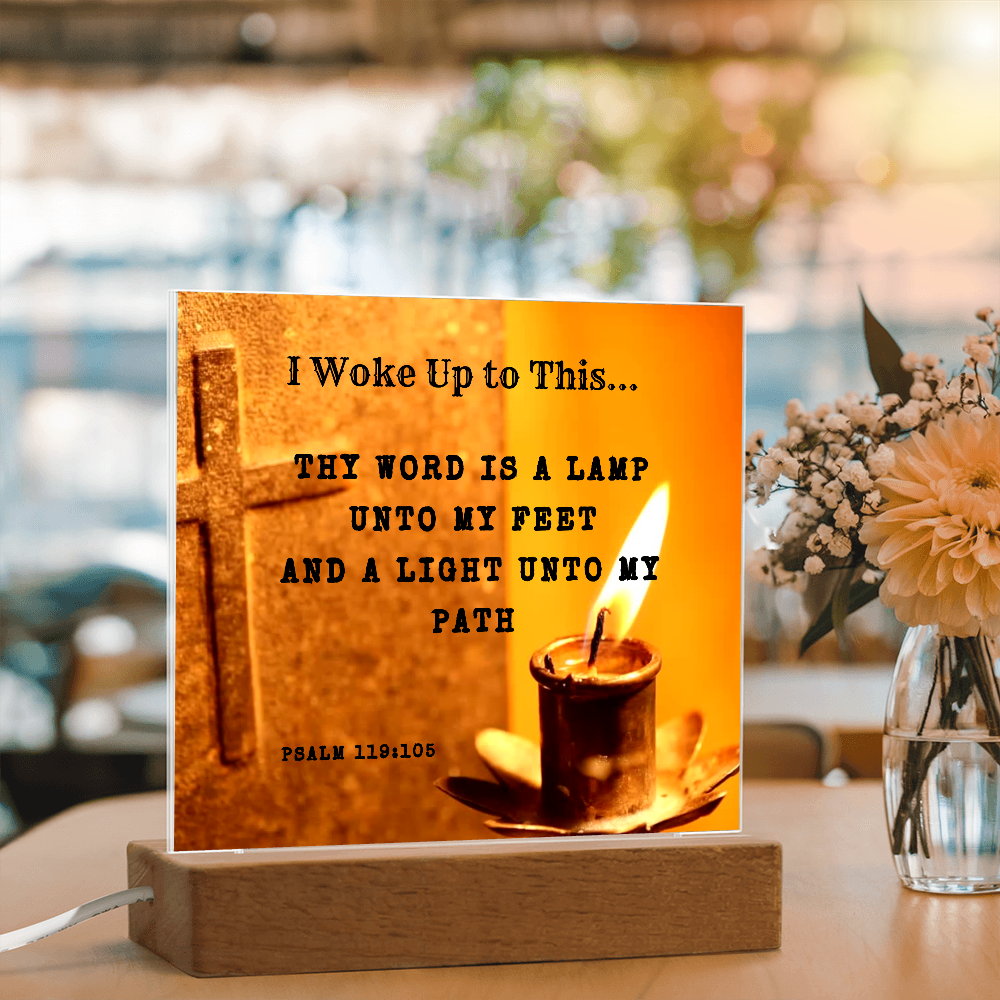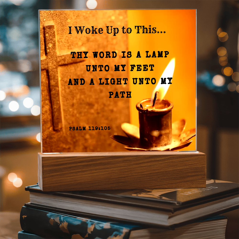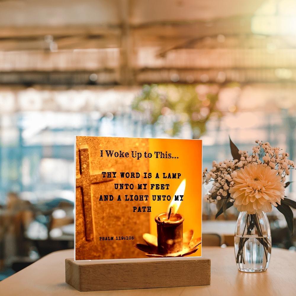 Your plaque will be crafted from premium acrylic with a professionally printed design for a polished look. It comes with a stylish wooden LED base, and you can choose between a USB plug-in option OR a cordless battery-operated option (requires 2 AAA batteries, not included). Both LED bases feature 7 vibrant colors, allowing the user to customize the lighting with various color changes and dynamic cycles.